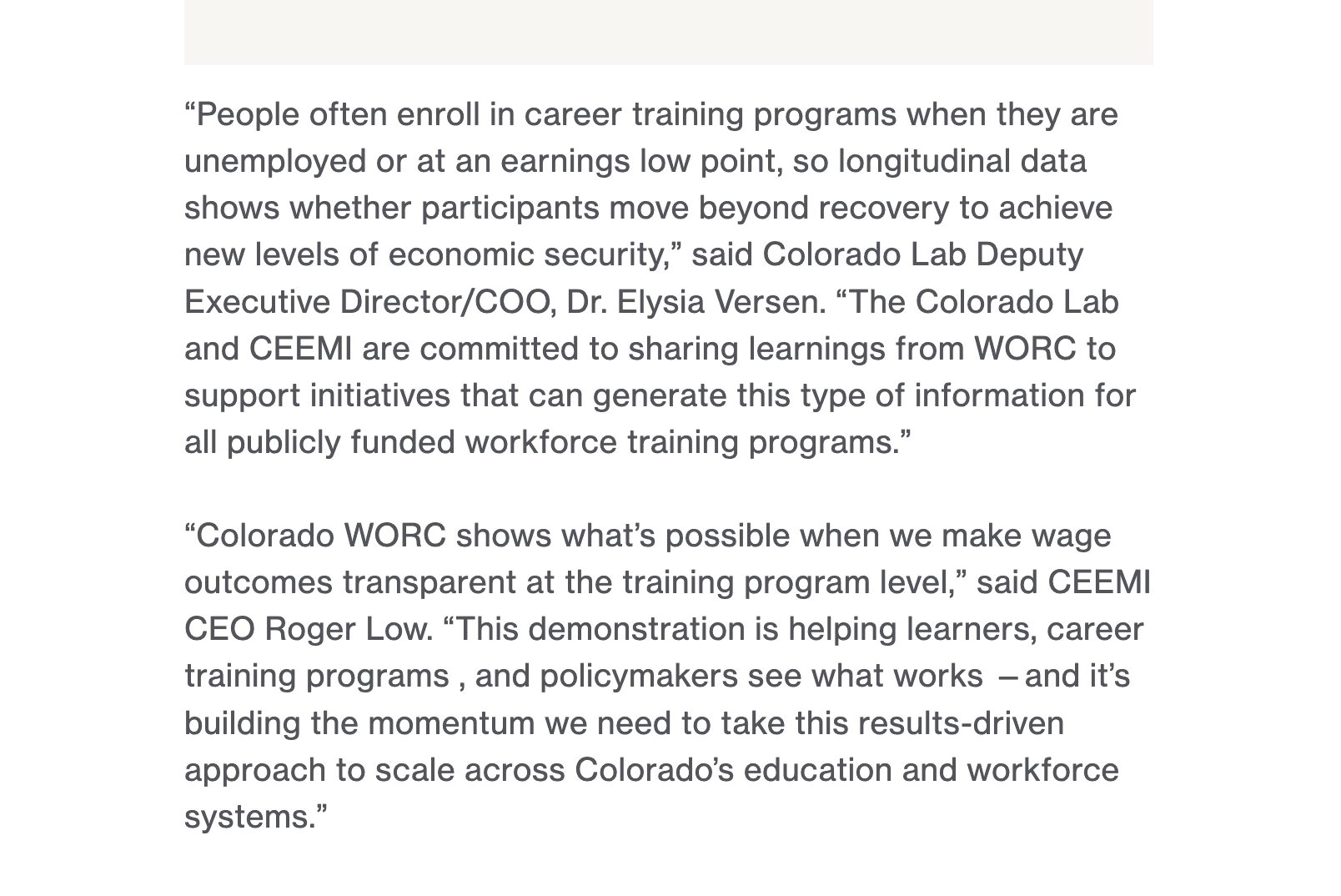 – Elysia Versen, Acting Executive Director at Colorado Evaluation and Action Lab